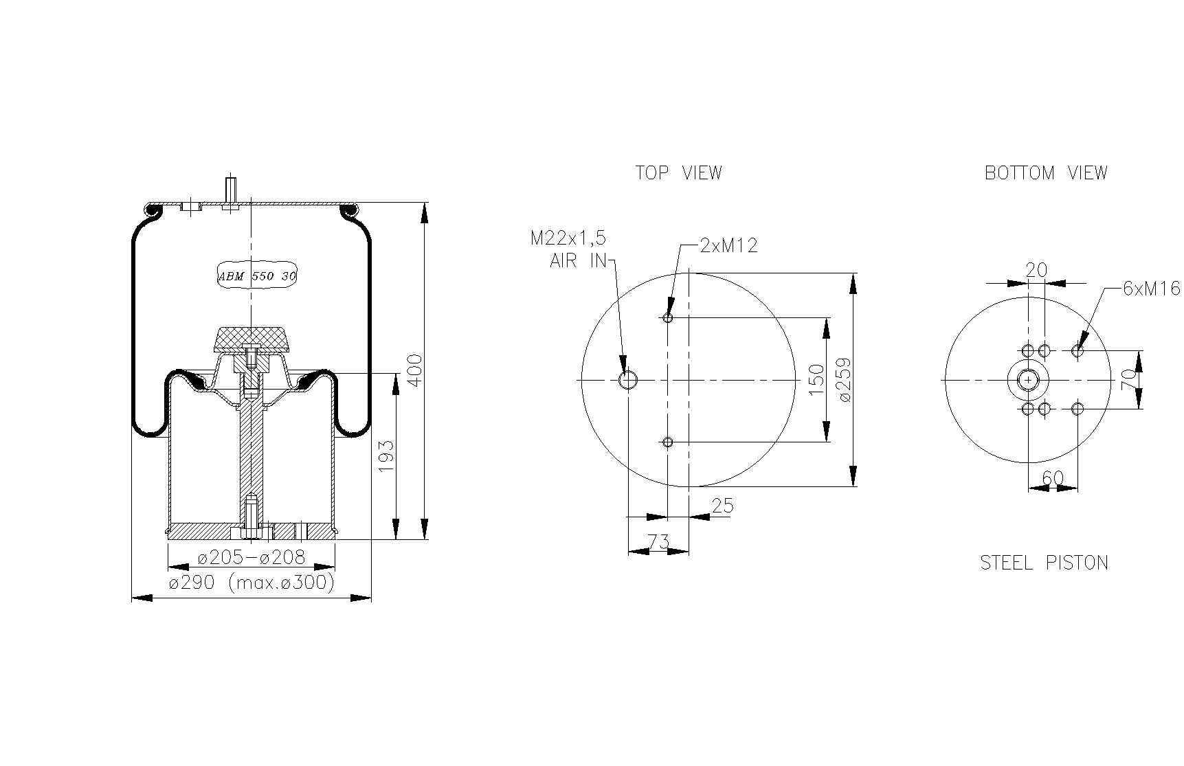 LOFTPÚÐI BPW 30 STÁLBOTN