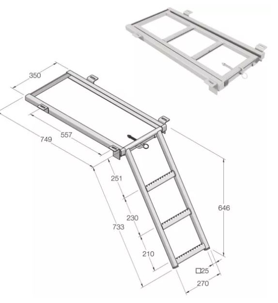 TRÖPPUR ÚTDRAGANLEGAR 3 ÞREP 750X350MM